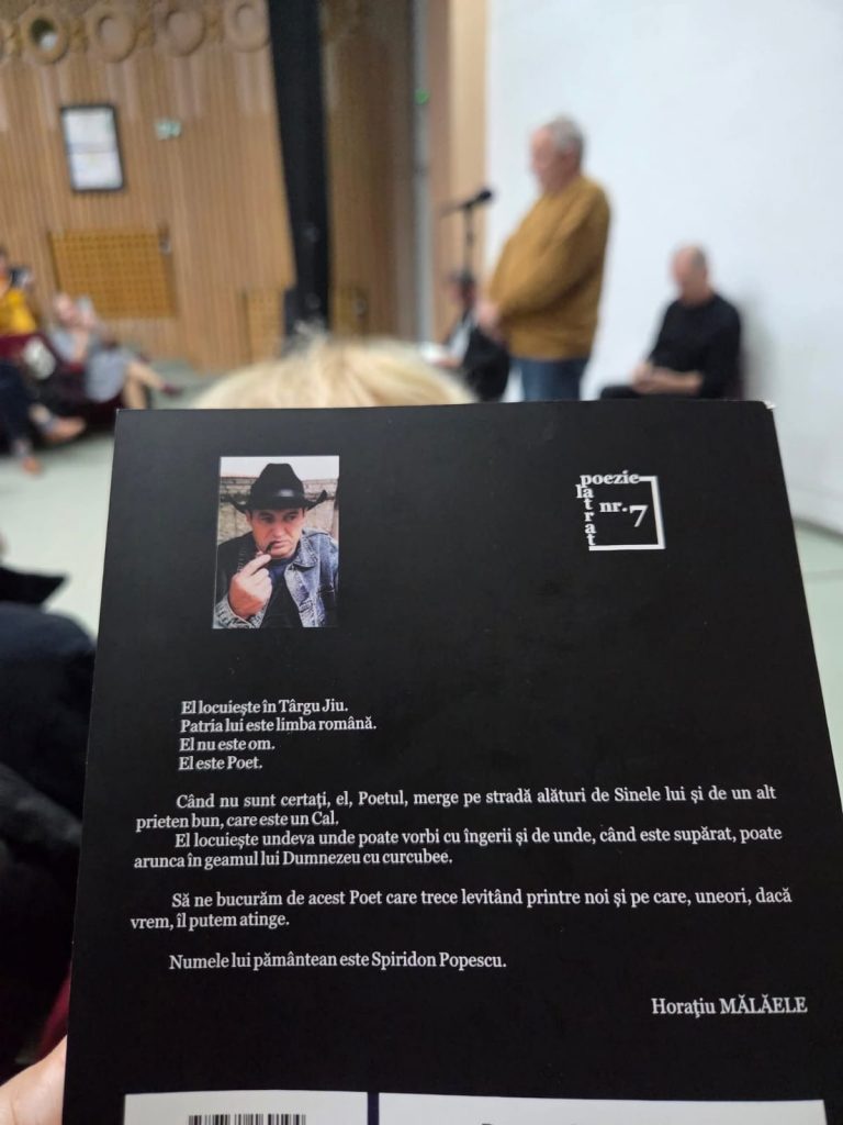 I-am ascultat pentru prima oară poezia recitată de actorul Horațiu Mălăele și primul impuls a fost să caut și să citesc și alte creații. Dacă-i răsfoiești o carte, nu o lași din mână până nu-i descoperi fiecare poezie, strofă după strofă și metaforă cu metaforă. L-am cunoscut apoi personal . La prima vedere, Spiridon Popescu este un om simplu, care se pierde în mulțime. Până când începe să vorbească . Verva cu care recită creații personale sau ale altor poeți, ironia fină, uneori mușcătoare, umorul oltenesc cu „accente” englezești, poveștile savuroase din lumea literară magnetizează pur și simplu audiența. De aceea, dialogul cu Spiridon Popescu, a fost pentru mine, unul dintre cele mai pline de miez interviuri pe care le-am realizat. Iar dacă până acum nu l-ați descoperit ca poet, bucurați-vă că mai aveți timp să-i citiți creațiile.