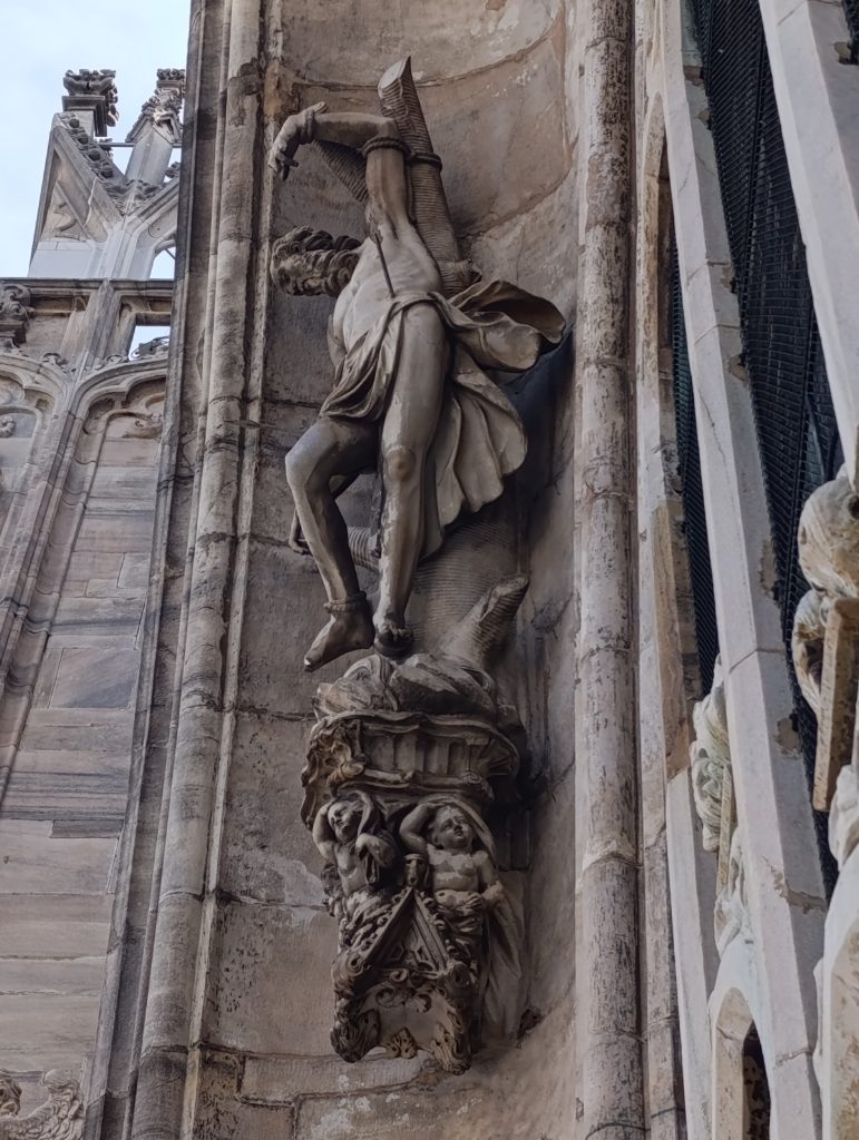 Sunt expuse totodată foarte multe elemente de decorațiuni exterioare , de la fragmente de porți, coloane până la basoreliefuri recuperate din clădiri milaneze demolate sau din biserici care nu mai există. Și aici, aceeași grijă la acuratețea detaliilor și la expresivitatea personajelor.