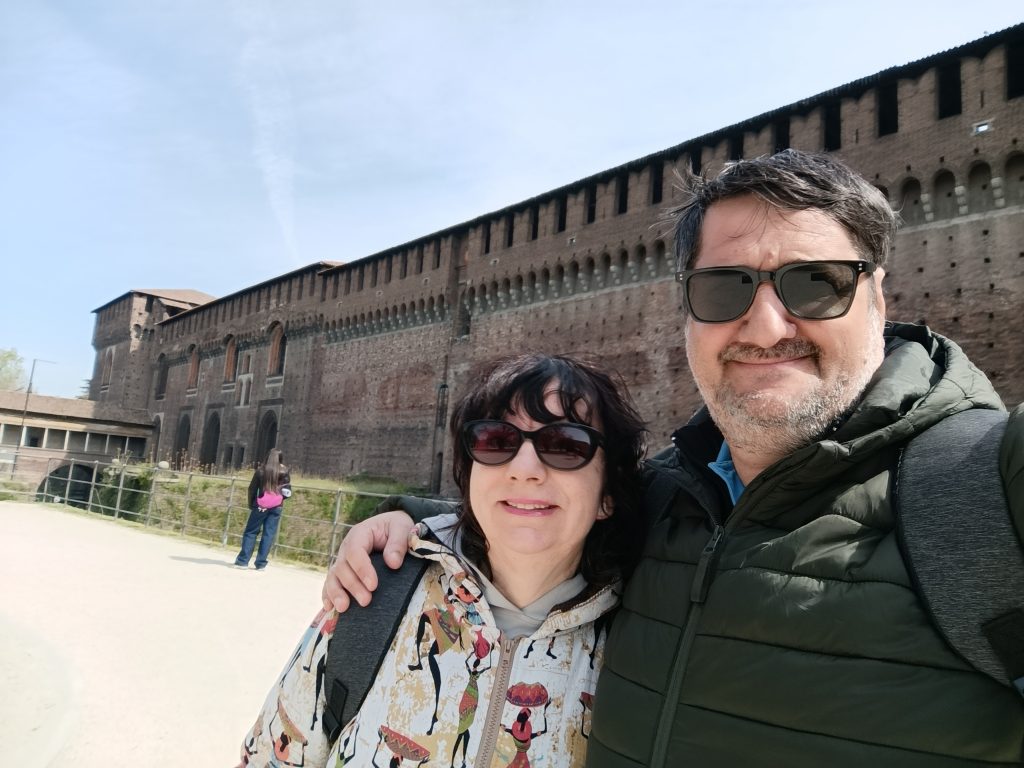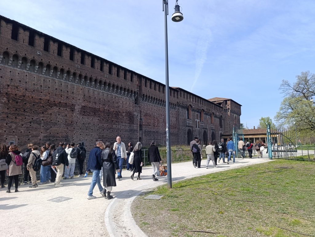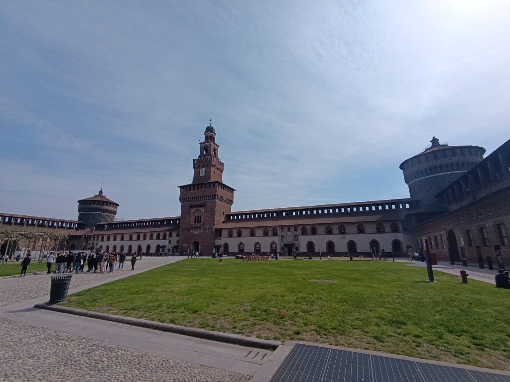 Castelul Sforza (Castello Sforzesco) impune prin măreție încă de la intrare, dar odată ce am trecut de poartă am realizat că dimensiunile lui sunt exponențial mai mari decât mi-am imaginat. Construit în secolul al XIV-lea de familia Visconti, dinastia Sforza a extins ulterior castelul transformîndu-l dintr-o fortăreață militară într-o reședință nobiliară rafinată. Astăzi este unul dintre cele mai mari complexe muzeale din Europa. Spațiul este unul cosmopolit și este plin de turiști din toată lumea, dar majoritari sunt copiii și adolescenții, deoarece există multe activități destinate lor.