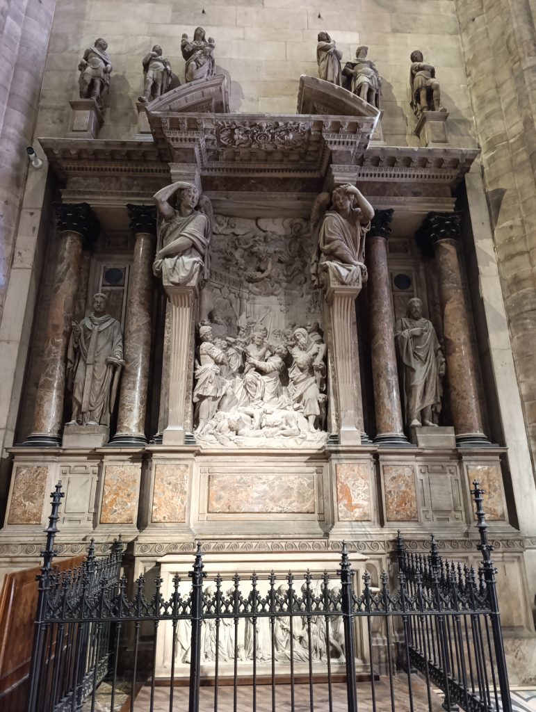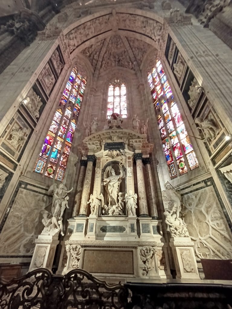 În catedrală, deasupra altarului principal se află una dintre cele mai prețioase relicve ale creștinătății, un cui care se spune că ar fi provenit din Crucea lui Hristos. Deasemenea domul adăpostește monumentele funerare ale unor figuri istorice importante, inclusiv arhiepiscopi ai Milanului și nobili ai familiei Visconti, fiecare monument fiind o piesă de artă renascentistă în sine.