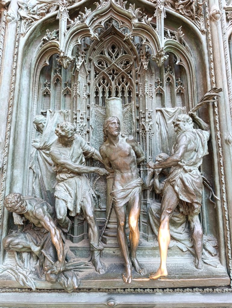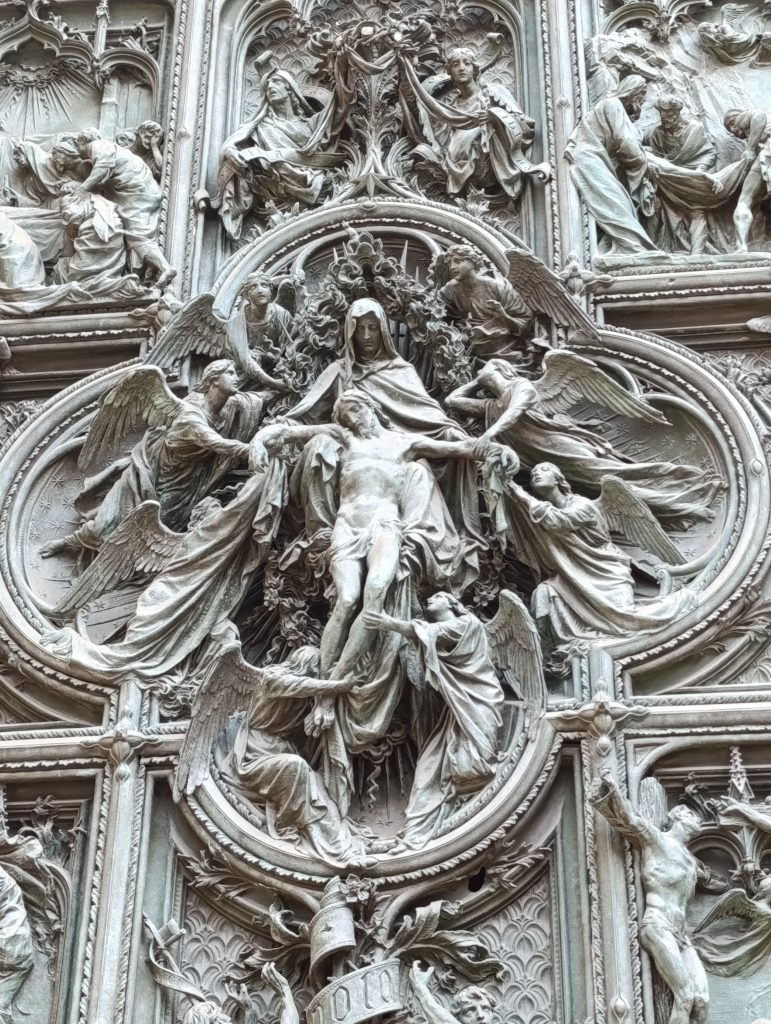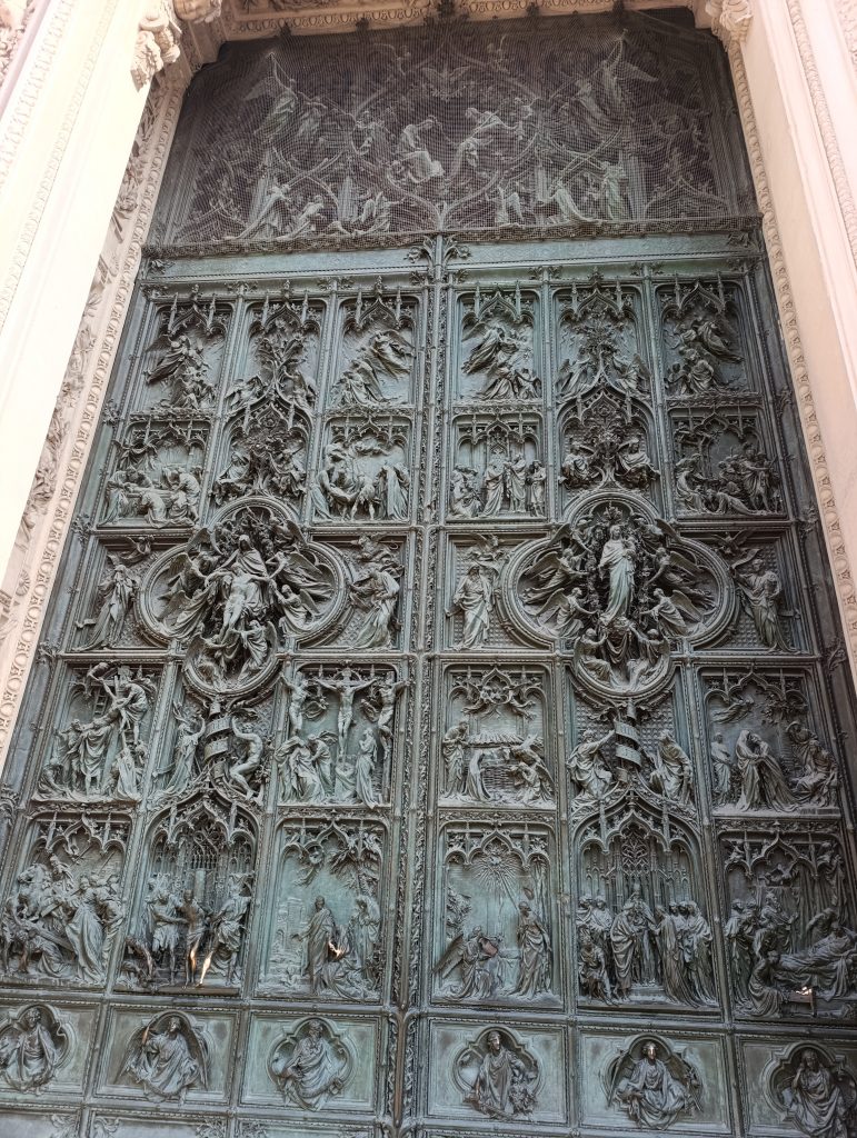 Fiind un edificiu de dimensiuni impresionante, vizitarea Domului se face pe trasee prestabilite de organizatori, în funcție de biletele pe care le achizitionați . Este recomandat să vă programați vizita din timp și să rezervați online accesul , preferabil de pe site-ul oficial al catedralei, unde prețul este cel mai mic. Noi am avut full pass, care a inclus vizitarea Domului și a muzeului din incintă (despre care va povesti Cristi) și în acest fel ne-am putut face o imagine completă despre travaliul de secole pentru realizarea acestei bijuterii arhitectonice. Cu toate restaurările făcute de-a lungul timpului, lucrările continuă și acum pe anumite porțiuni ale catedralei. La sfârșitul vizitei am zăbovit un pic mai mult pentru a admira fațada, care include 3 uși masive, cu sculpturi spectaculoase prin finețea detaliilor. In același registru se înscriu și basoreliefurile cioplite în piatră, unde sunt imortalizate cu precădere scene biblice.